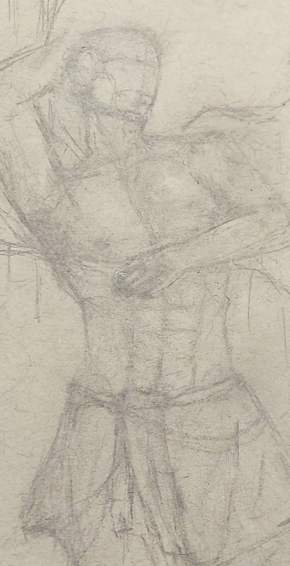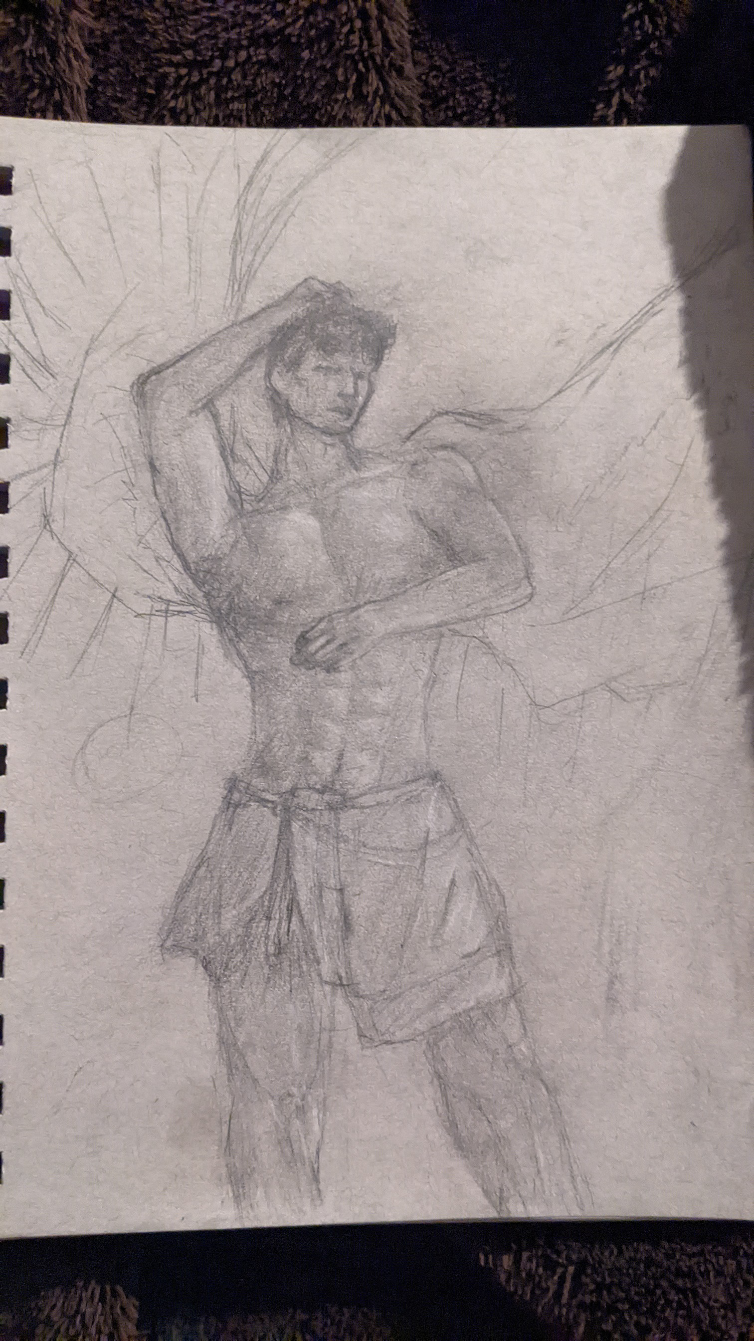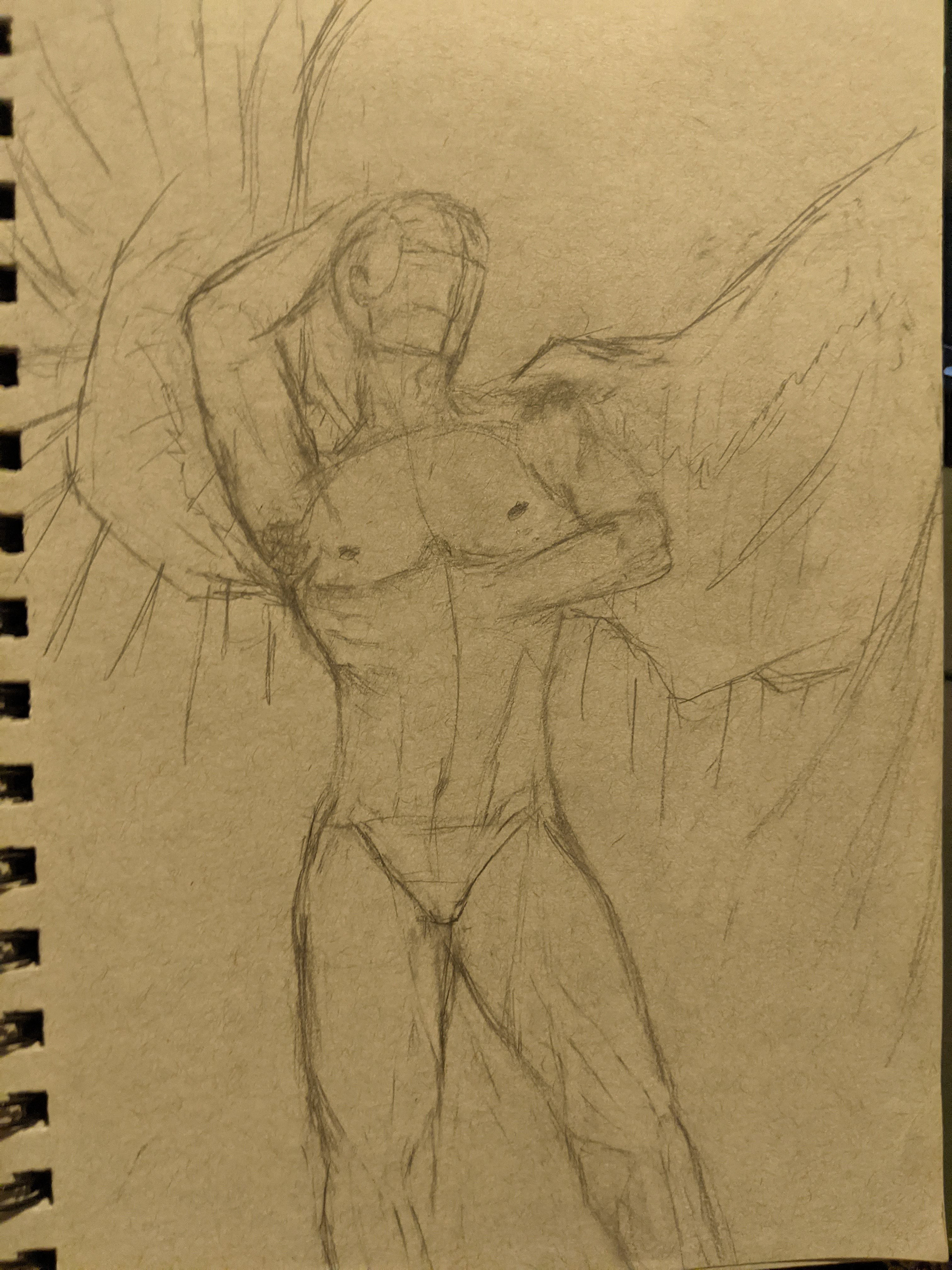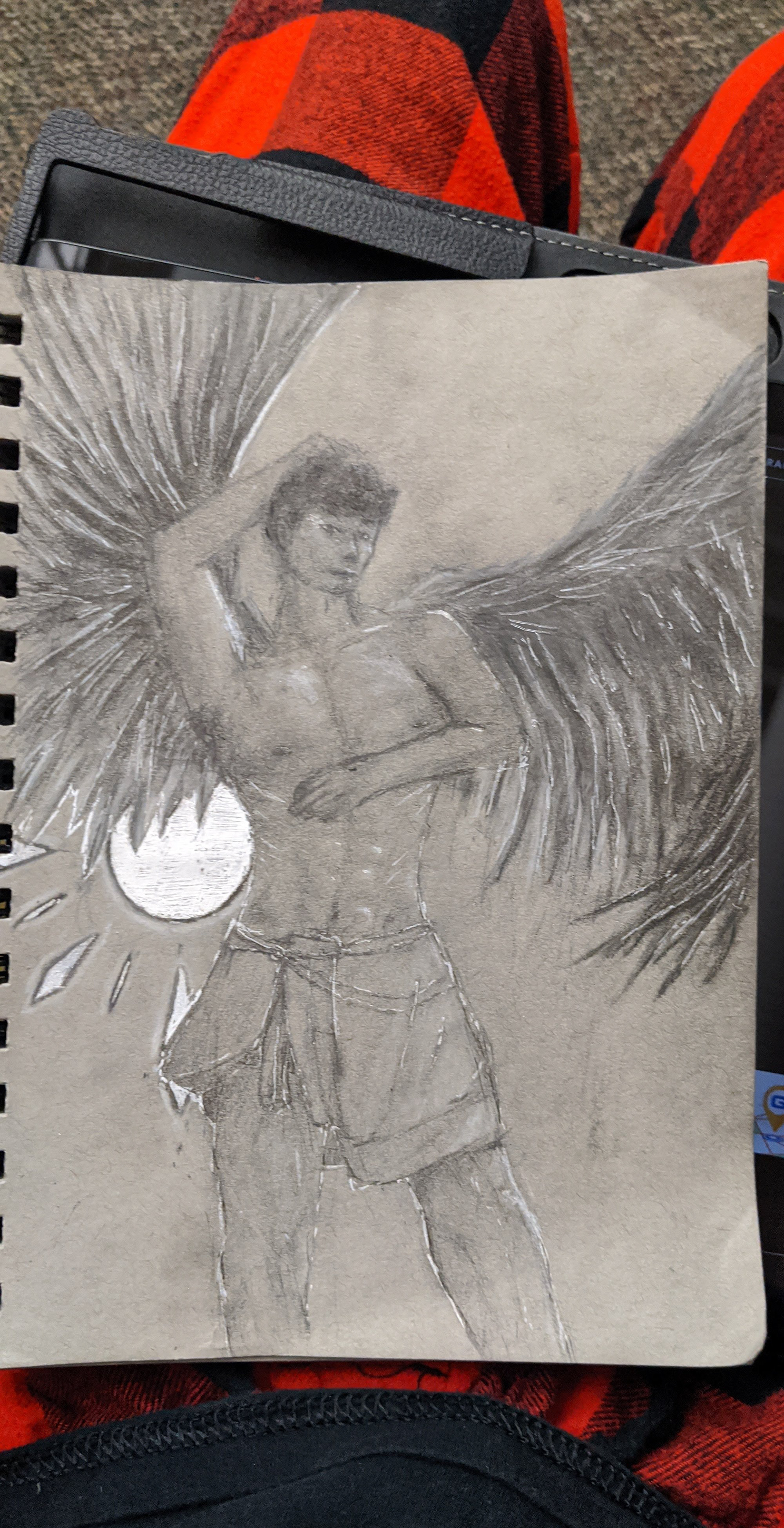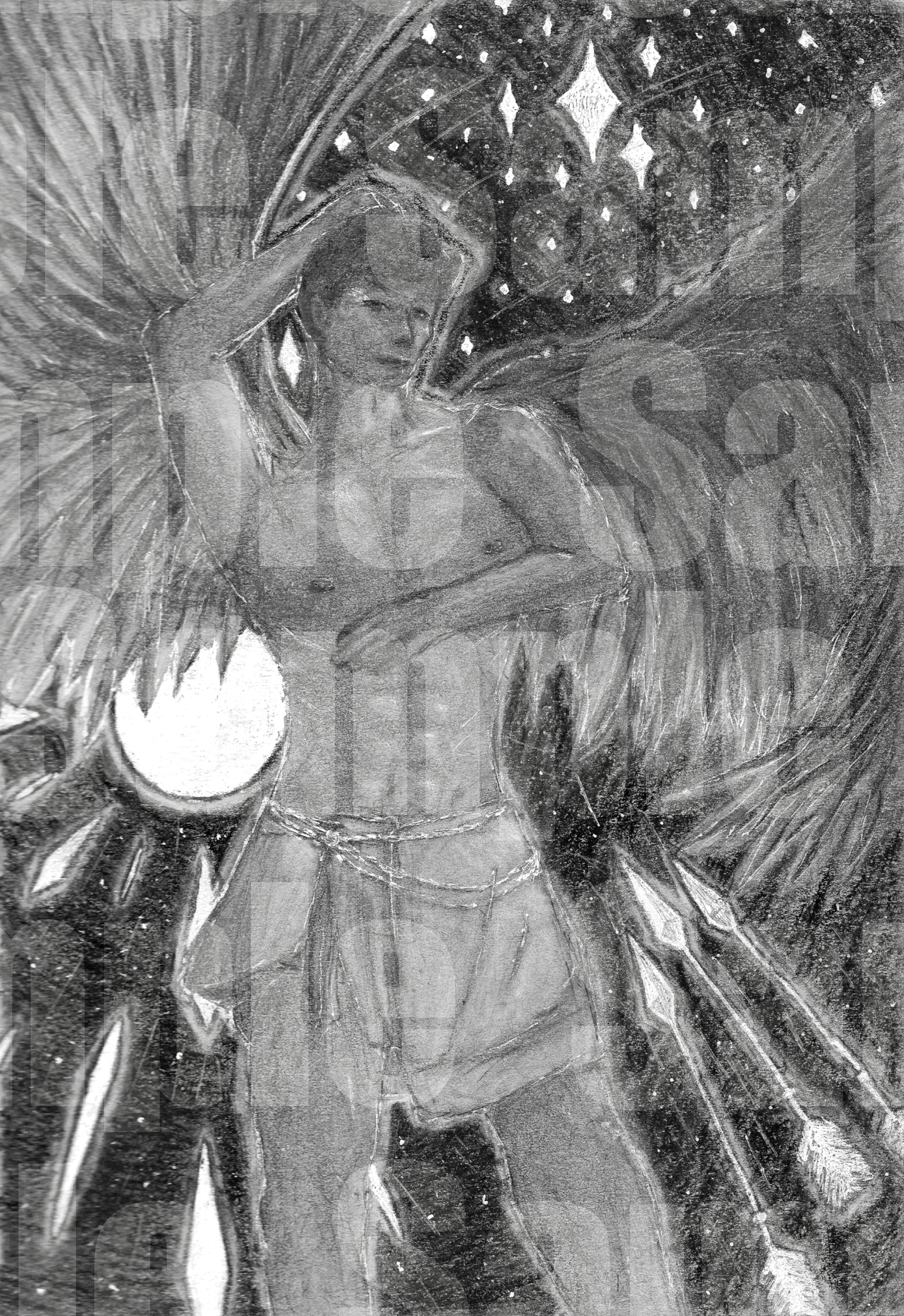 A custom creation made without reference based off the concept of a god drawn on grey toned paper.